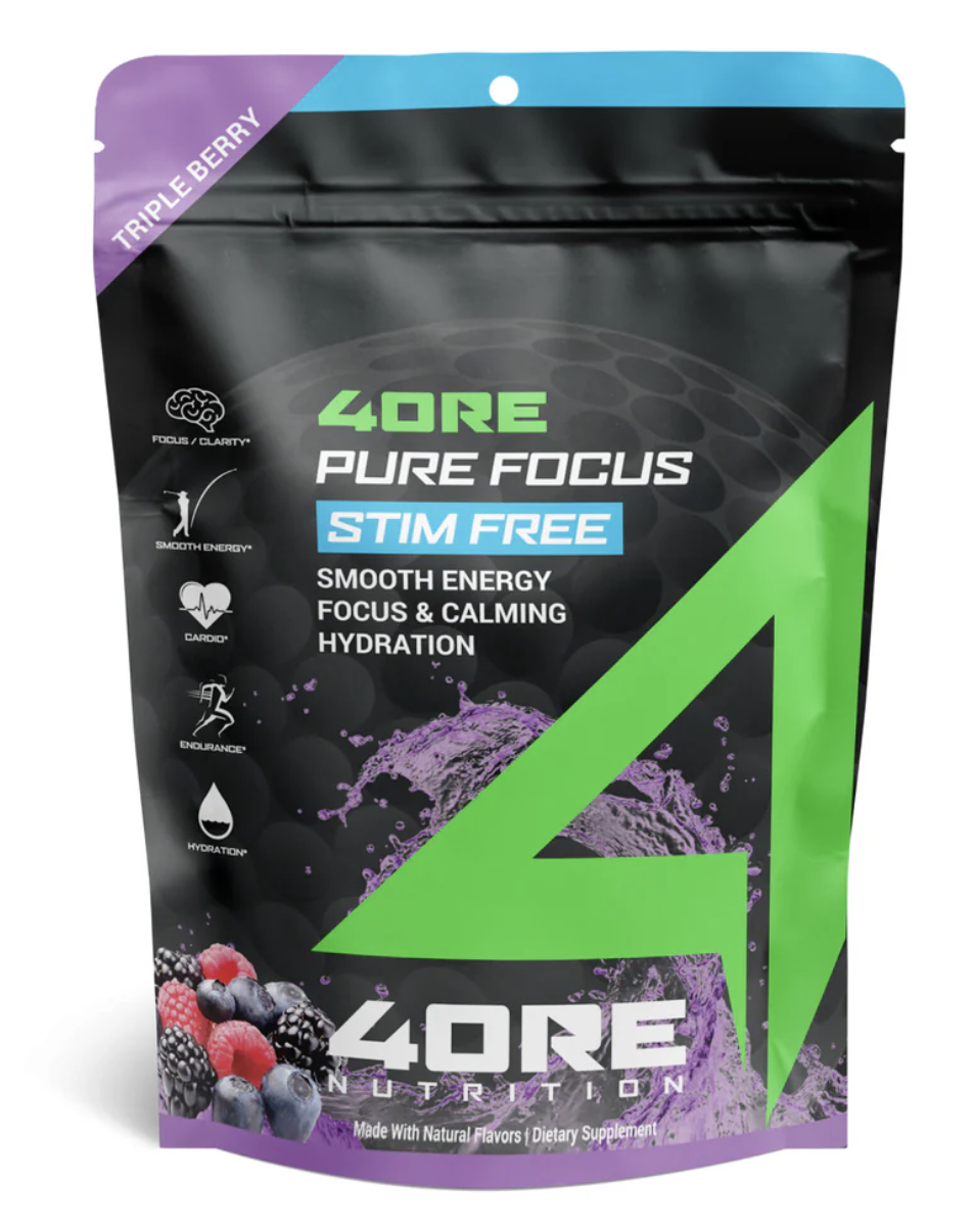 Golfing, just like other sports, requires the body to be hydrated and prepared to tackle the cellular burden on exercise. A balanced PH is essential to keeping the body optimally hydrated while exercising. 4ORE PURE FOCUS, includes several electrolytes and minerals that support vital cellular functions while playing. In addition, PURE FOCUS contains aminos for focus & energy, and aminos for calming and clarity.